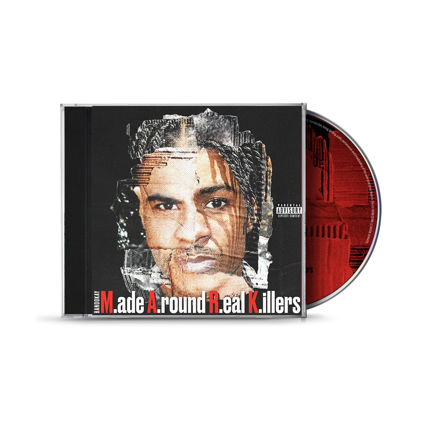 The core concept centred on identity, legacy, and resemblance. The title M.A.R.K references Bandokay’s late father, Mark Duggan, while also standing for Made Around Real Killers. To bring this meaning to life visually, we created a collage-based portrait that merges imagery of Bandokay with archival imagery of his father. The two faces are torn, layered, and fused together, emphasising their strong resemblance and symbolising inherited identity, shared history, and influence. The rough, ripped-paper texture gives the artwork a raw and confrontational feel, reinforcing themes of loss, reality, and environment.