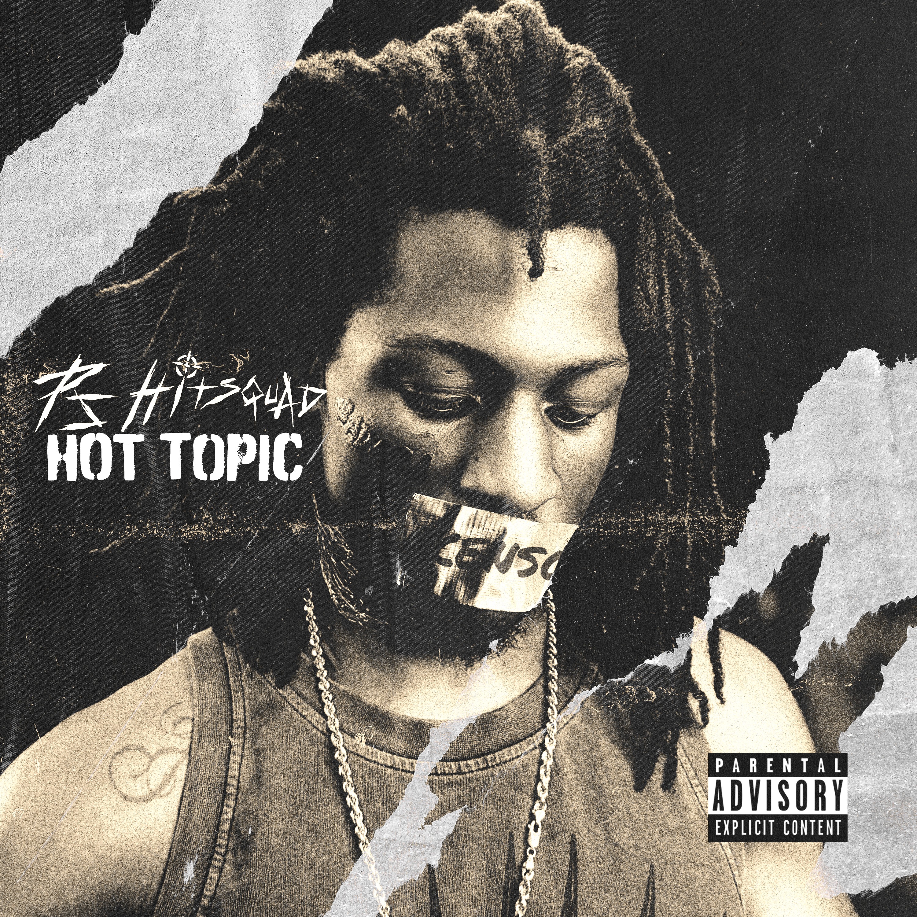 The Hot Topic single artwork extended the same visual language but pushed it further conceptually.The close-up portrait, muted tones, and taped-mouth detail introduced a sense of tension and commentary, aligning with the track’s subject matter. By maintaining the same grunge treatment and paper-tear motifs, the single artwork remained clearly connected to the mixtape while standing strong on its own.